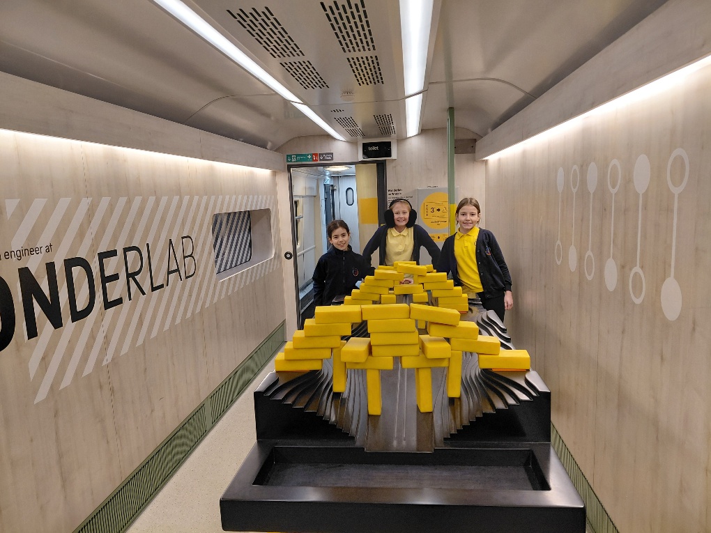 Each school had exclusive one-hour access to the train. On arrival, members of the Train Ed team met each group to deliver a briefing and support their visit, before students explored the Past carriage with a railway history quiz, the Wonderlab carriage for hands-on engineering challenges, and the Careers carriage to learn about rail jobs. Visits concluded in the Partner Zone with dress-up, photo opportunities, and freebies, including Arlo books and information about rail careers.