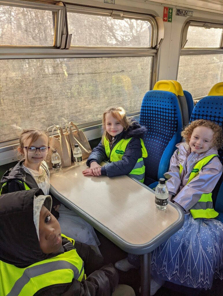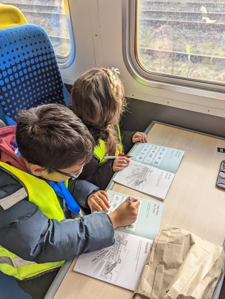 Children from Darwen Sudell Primary School (Years 2 & 4) and St Margaret’s Primary School, Langho, travelled by train to Clitheroe, while pupils from St James’ Primary School, Clitheroe, walked to the Castle Museum. Dave met the groups traveling by train to deliver a rail safety briefing and the children also worked through All Aboard booklets during the journey.